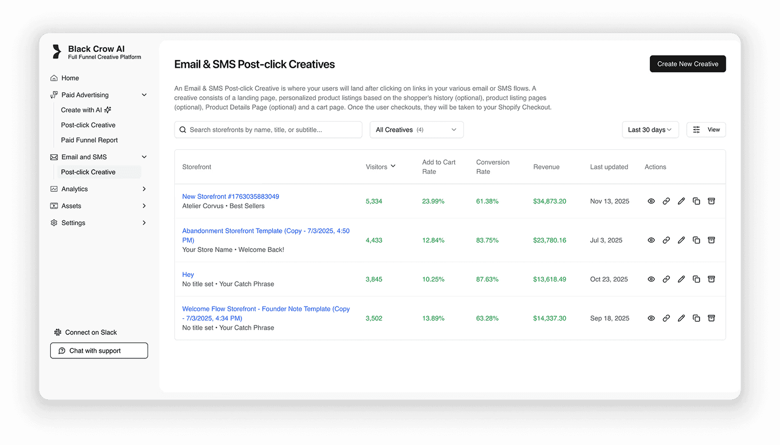 Black Crow AI Growth Pack uses AI to identify returning shoppers, predict buying intent, and deliver perfectly timed email and SMS that convert.